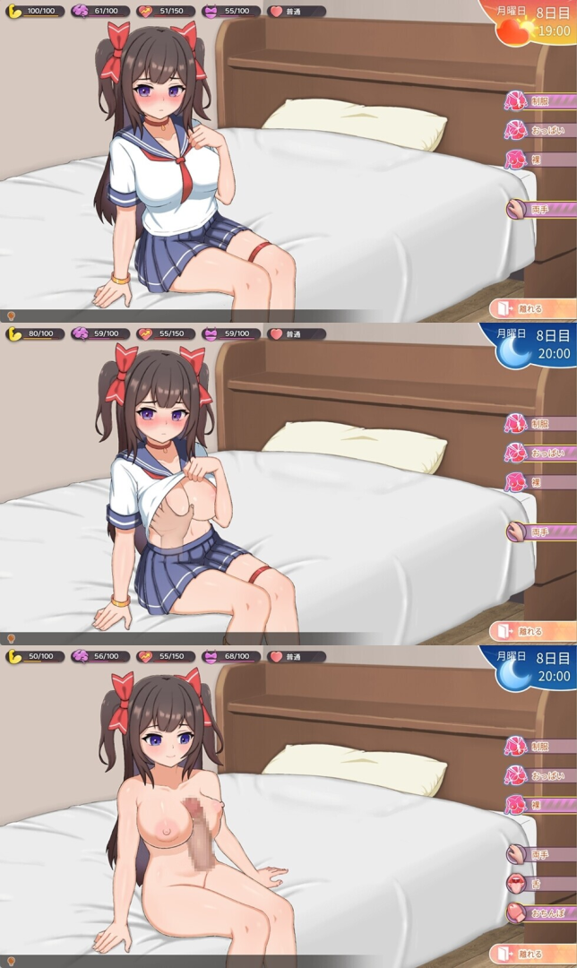 随着你的“好感度”提升,她会对你敞开心扉,并接受更大胆、更极端的身体接触……!